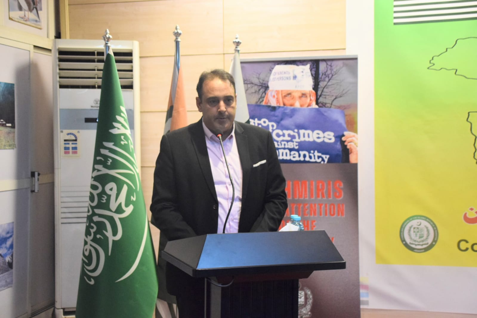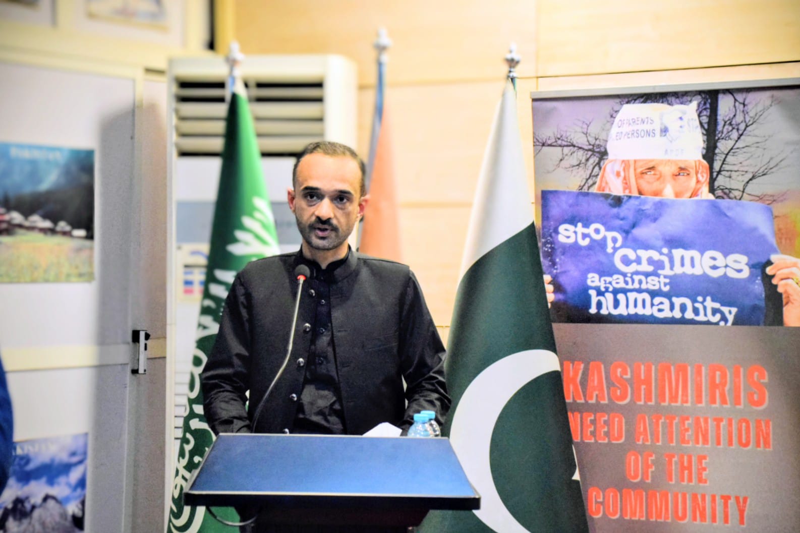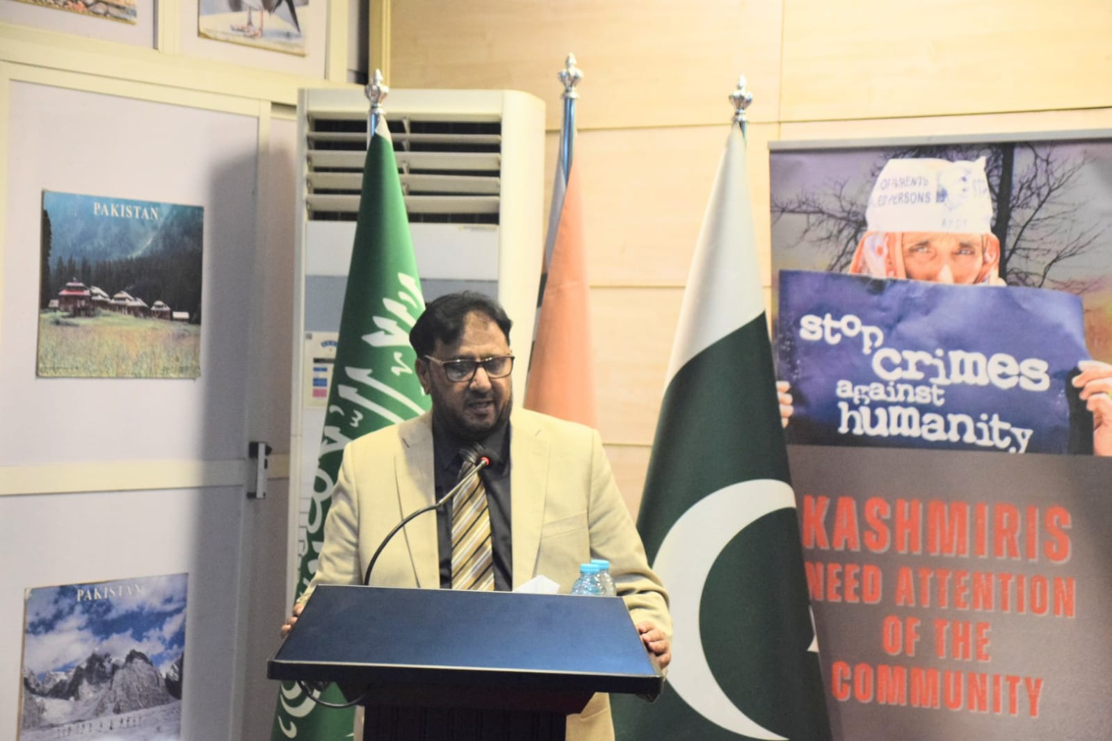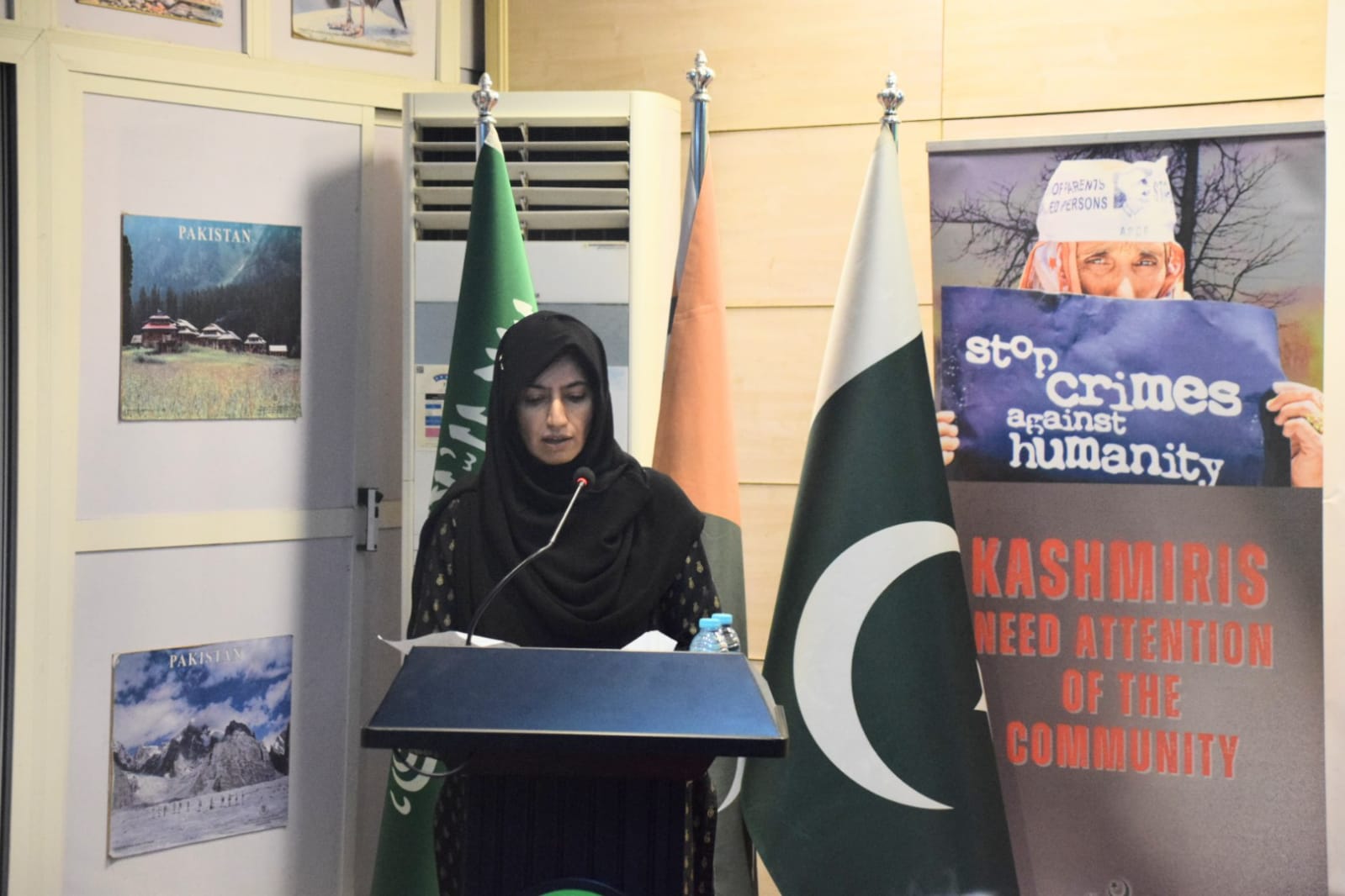 A documentary highlighting the plight of those living in the Indian occupied Kashmir and gross human rights violations committed by Indian military was screened. Participants and speakers also urged international community and United Nations to address the longstanding issue of Kashmir and take urgent measures to stop genocide of Palestinians in Gaza.